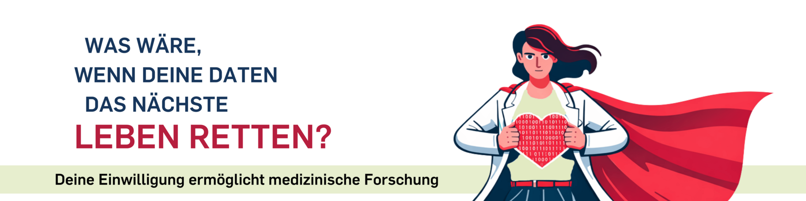 Ihre Gesundheitsdaten können einen wesentlichen Beitrag zur medizinischen Forschung leisten. Durch die Einwilligung zum sogenannten Broad Consent erlauben Sie, dass Ihre Daten aus der Versorgung nicht identifizierbar (pseudonymisiert) für die Forschung genutzt werden. Dies hilft uns, innovative Behandlungsmethoden zu entwickeln und medizinische Erkenntnisse zu erweitern.